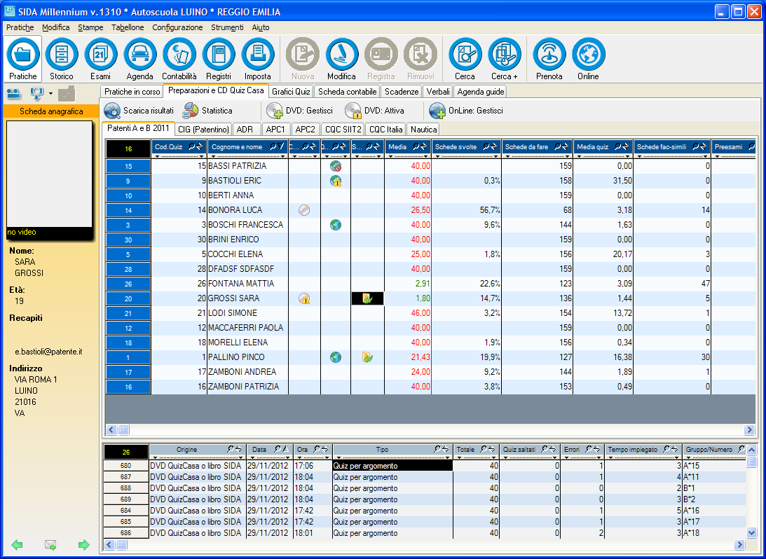 È stato aggiunto un nuovo indicatore (la terza delle colonne con i simbolini) che indica quali sono i candidati a cui sono stati scaricati dei risultati da internet. Si azzera quando si fa doppio clic sul candidato per assegnargli altre esercitazioni.
