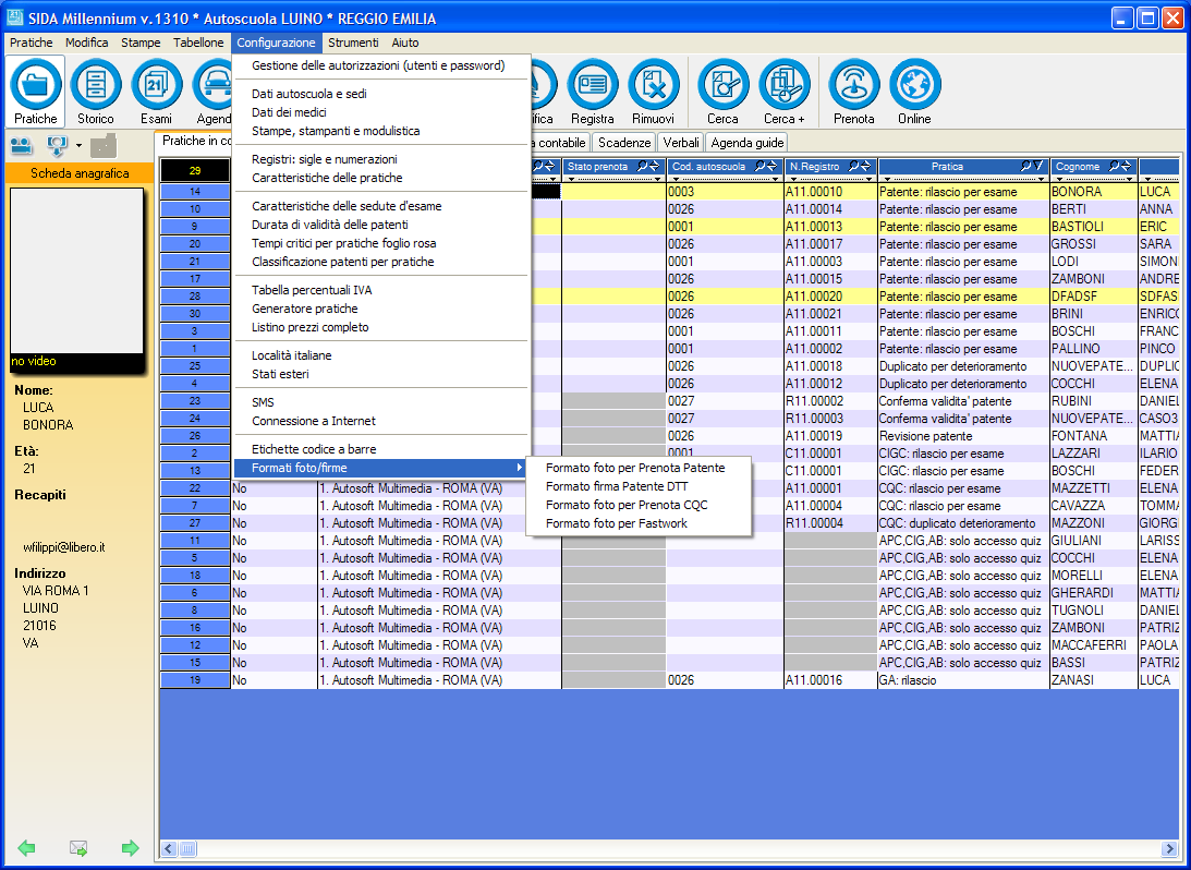 SIDA Gestione è stato aggiornato con particolare riguardo all'aspetto relativo alla acquisizione della foto. A causa delle specifiche tecniche imposte dal CED, occorre precisare alcuni dettagli tecnici in occasione di ogni invio della foto, pena la non accettazione da parte del Ministero. Grazie a SIDA, però, tutte le operazioni di ridimensionamento, pesatura, dpi, ecc... sono completamente automatiche, sia nella gestione sia nel tuttoprenota e non richiedono alcun intervento utente. È SIDA che fa, in automatico, tutti i controlli necessari. L'autoscuola deve solo scansionare, anche approsimativamente la foto, selezionare il riquadro con il volto e lasciare che SIDA faccia tutto il resto.