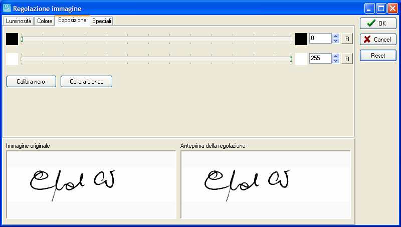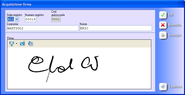 Cliccate sul pulsantino a forma di macchina fotografica per acquisire la firma dallo scanner. Clic sul pulsantino di disegno per effettuare il ritaglio.