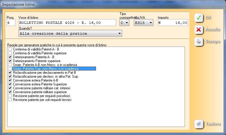 Nella tabella in basso sullo schermo cliccare su ogni voce che presenta l’importo di € 14,62 e, all’interno della maschera, modificare con il nuovo valore di € 16 confermando con OK.