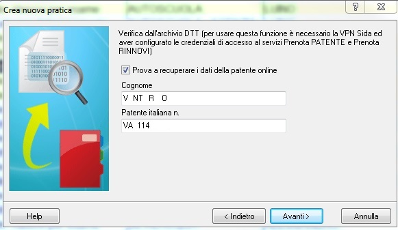 Cliccando su Avanti viene effettuata la ricerca dei dati inseriti. Se la ricerca va a buon fine, i dati relativi al candidato vengono compilati automaticamente all'interno della pratica.