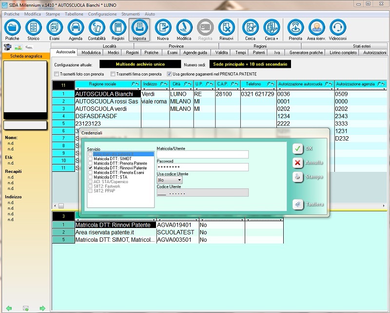 2. in Imposta>Autoscuola sono stati aggiunti i campi per le credenziali di rinnovi e duplicati: