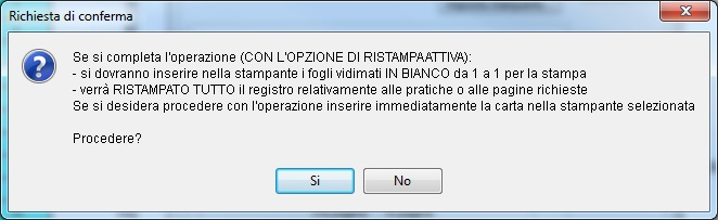 Avviando la procedura di stampa appare questa schermata, alla quale bisogna premere di SI per procedere.