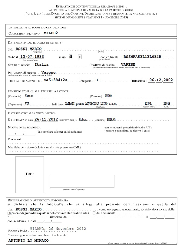 Le nuove disposizioni riguardo al rinnovo patente prevedono che, per le sole pratiche non rinnovabili on line (le 75U1...), non venga più redatto un certificato medico tradizionale ma un Estratto dei contenuti della relazione medica, senza marca da bollo.