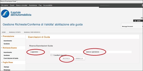 | 6. Si verrà rimandati direttamente alla pagina corretta sul Portale dell’Automobilista nella quale sarà necessario inserire Cognome e Marca operativa del candidato. |