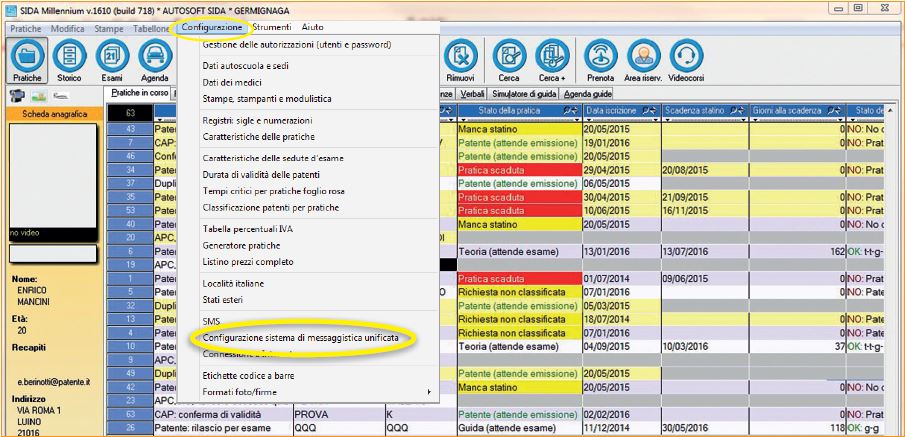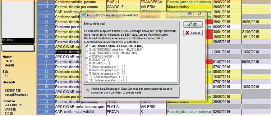 Ora che le credenziali d’accesso all’Area personale del ww.patente.it sono impostate, tornando nel pannellino Configurazione > Configurazione sistema di messaggistica unificato, potremo spuntare la sede desiderata.