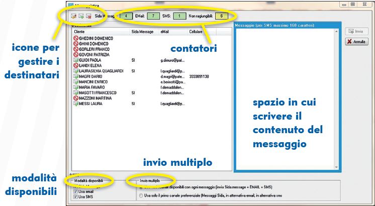 I contatori accanto alle iconcine appena descritte ci riassumono a quanti candidati ci è possibile inviare un messaggio on line, a quanti invece potremo inviare una e-mail o un SMS.
