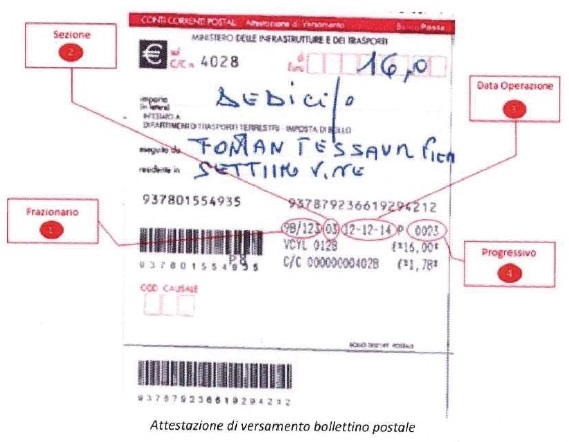 Accertarsi che sotto la voce Pagamento ci sia il Bollettino Postale (B) - Accertarsi che in Codice controllo e Quarto campo abbiate "sparato" i codici dei bollettini - Attenzione a sparare i codici giusti in linea con il 9001 e il 4028 - Compilate successivamente il CODICE TIMBRO POSTALE come indicato sotto la sezione VERSAMENTI: Frazionario poi Sezione poi Data poi Progressivo (qui sotto i bollettini da cui ricavare le informazioni). ATTENZIONE IL PROGRESSIVO HA SOLO 4 CIFRE, per cui, del numero PROGRESSIVO del bollettino Banco Posta inserite SOLO LE ULTIME 4 CIFRE.