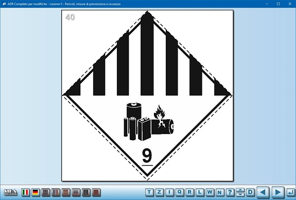 Il modulo quiz è stato aggiornato con il nuovo listato ADR 2017. Come già detto per il modulo Aula, le novità riguardano principalmente l’introduzione di quiz relativi alle pile al litio, ed alcune variazioni terminologiche.