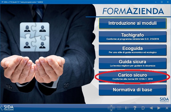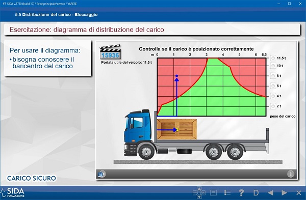 Questo modulo è completo di simulatore informatico per il calcolo della disposizione di carico e ancoraggi e consente di sperimentare le nozioni acquisite e realizzare una ottimale progettazione del carico.
