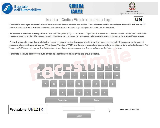Il Ministero delle Infrastrutture e dei Trasporti ha infati modificato in tal senso le modalità di autenticazione. Il candidato dovrà consegnare all'esaminatore il documento di riconoscimento e lo statino. Dovrà poi digitare il proprio codice fiscale nella maschera del pc che gli è stato assegnato.