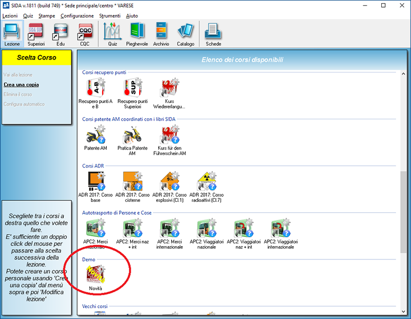 Tutto il materiale didattico nuovo o modificato è visibile dal corso Demo: Novità nella lezione "Novità corso parte pratica patenti A".