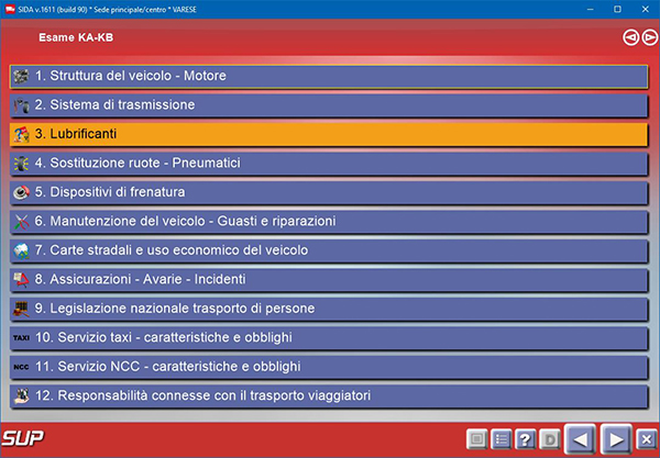 Il corso è articolato in 12 lezioni che ripercorrono tutto il programma d'esame previsto dall'art. 312 - app. I al titolo IV del Regolamento del CDS, e comprendono tutti i quiz del nuovo listato KB, secondo le consuete modalità di funzionamento di SIDA.