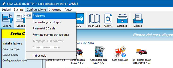 Per farlo, aprire il menu Configurazione dall'aula di SIDA, selezionare nel menu la funzione "proiettore".