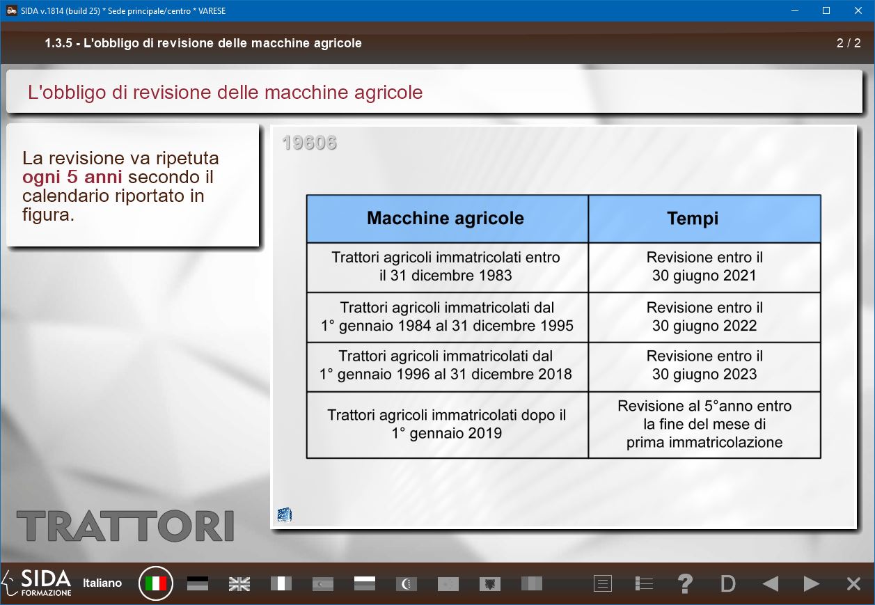A seguito delle nuove scadenze, abbiamo aggiornato le tabelle già presenti nel modulo "Trattori" e aggiunto un paragrafo dedicato, nel modulo "MMT" di SIDA Work.