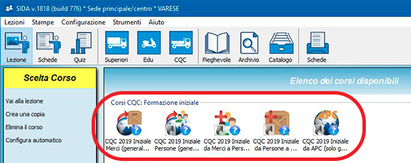 Per la preparazione dei candidati alla CQC secondo le nuove regole, occorre selezionare i corsi d'aula che hanno queste icone.