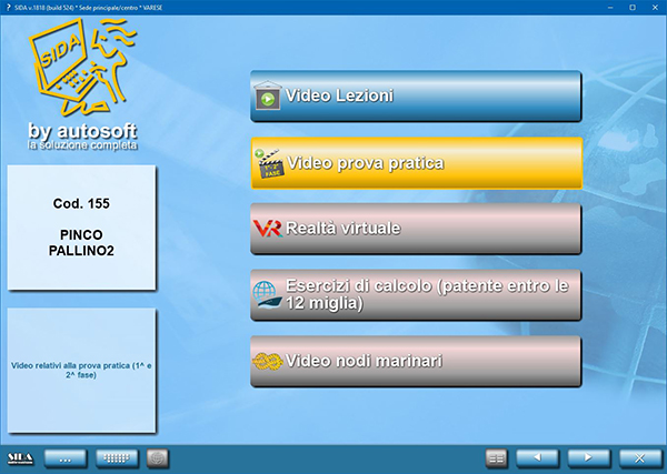 Nel modulo quiz di SIDA, tutto il nuovo materiale didattico relativo alla prova pratica è visibile dal candidato che entra con il proprio codice in Video Lezioni e realtà virtuale - Video prova pratica.