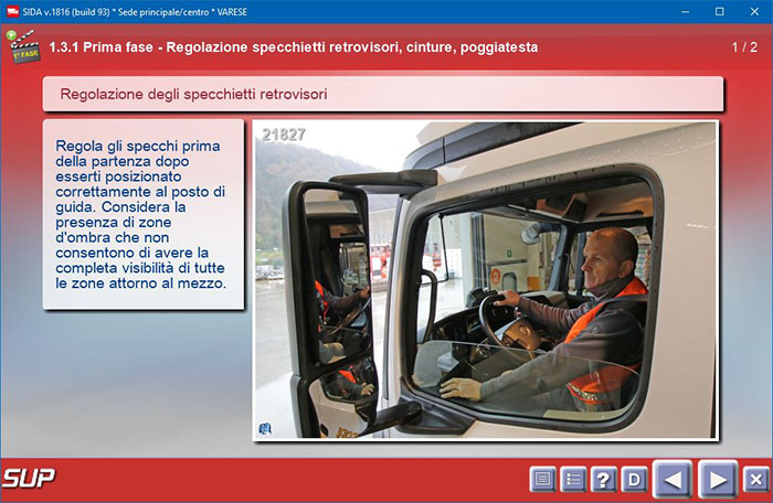 All'interno del corso, la lezione "Parte pratica" presenta immagini e filmati appositamente creati per illustrare come effettuare le manovre ed i controlli richiesti dalla normativa.