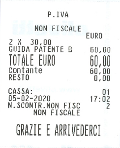 A partire dal mese di luglio 2020 partirà la lotteria degli scontrini. Questa lotteria è riservata ai clienti maggiorenni residenti in Italia che effettuano l'acquisto di beni e servizi fuori dall'attività di impresa, arte o professione preso esercenti che trasmettono telematicamente i corrispettivi. Per partecipare all'estrazione, il cliente deve comunicare all'autoscuola il suo "codice lotteria", che viene generato sul portale della lotteria.