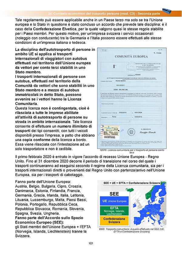 Abbiamo aggiornato il paragrafo 24.1.2 dedicato al Trasporto comunitario con l'indicazione dell'uscita dalla UE di Regno Unito e Irlanda del Nord e con l'indicazione che, per tutto il 2020 rimane comunque in vigore nei confronti di questi paesi la disciplina e la normativa comunitaria. Abbiamo aggiornato di conseguenza l'immagine 9500, relativa agli stati Membri UE.