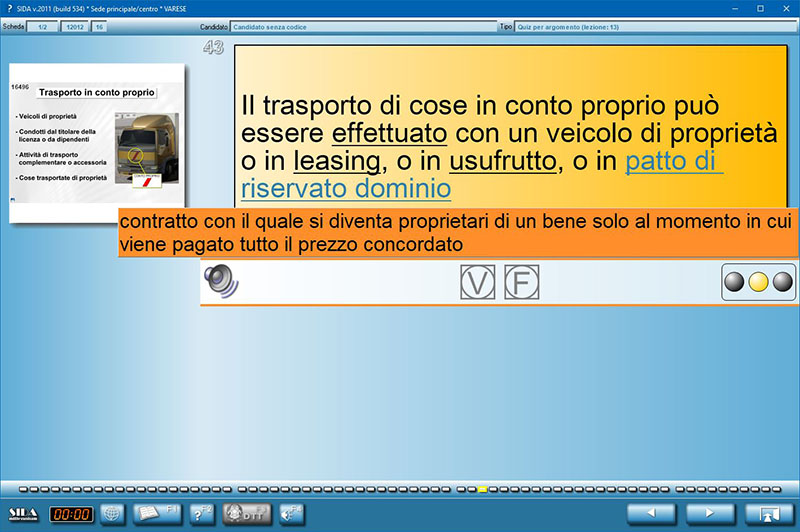 Con questo aggiornamento abbiamo integrato anche nel corso CQC la funzione di "Vocabolario elettronico", già presente da tempo nei moduli SIDA Quiz e SIDA Aula A e B, a cui abbiamo aggiunto nuove funzionalità.
