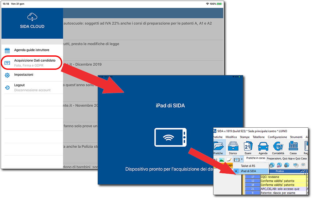 con TABLET o SMARTPHONE con pennino e permette di archiviarli in SIDA Gestione dell'autoscuola.