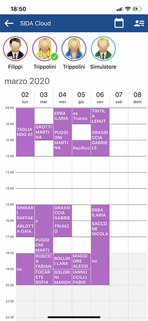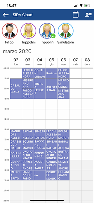 SIDA CLOUD - AGENDA GUIDE VISTA LATO ISTRUTTORE DA SMARTPHONE