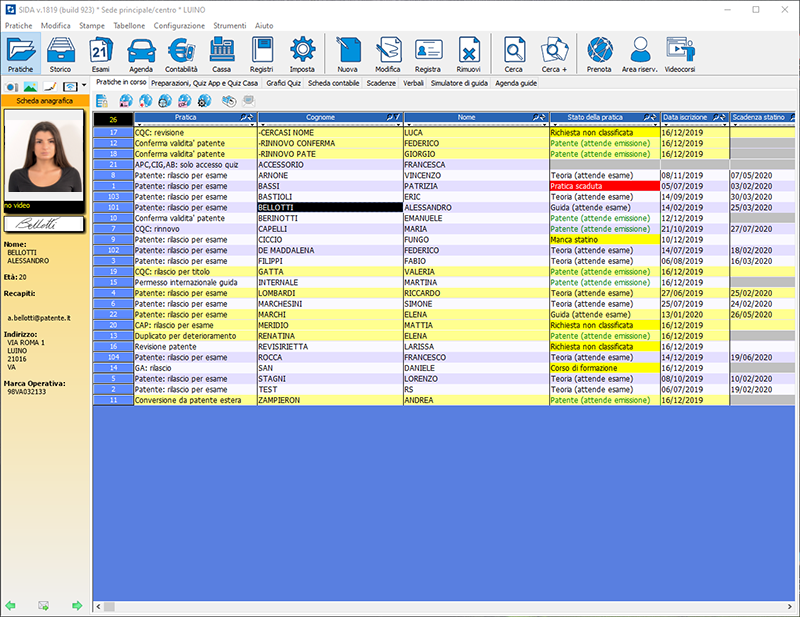 - inserimento colonne data prenotazione e autoscuola tabellone principale