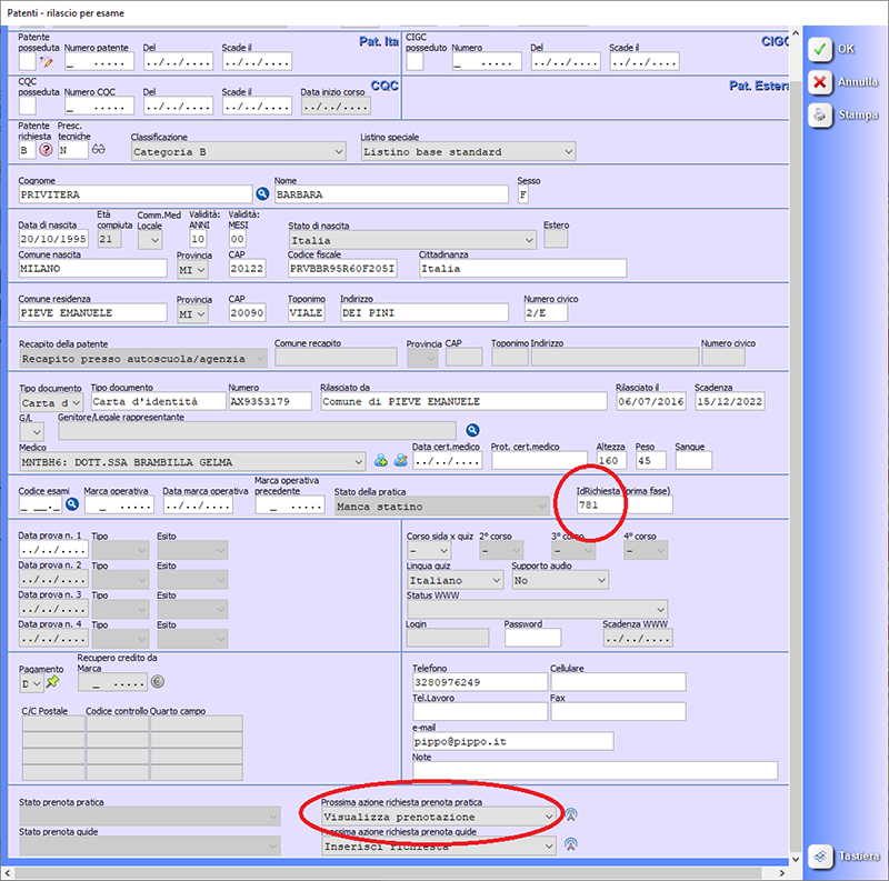 4. ... nel frattempo il medico completa la pratica con i dati medici (stato prenotazione "ATTIVO")