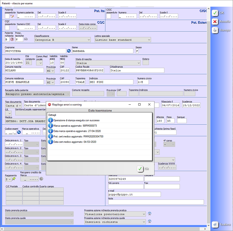 Nel wizard di creazione pratica, la ricerca dati su Portale è stata estesa anche a pratiche di tipo CQC (rilascio e rinnovo). Inoltre ora si riesce a ricavare dal Portale l'eventuale tipo CQC posseduta dal candidato e la relativa scadenza, indipendente da quella della patente, che viene comunque indicata.