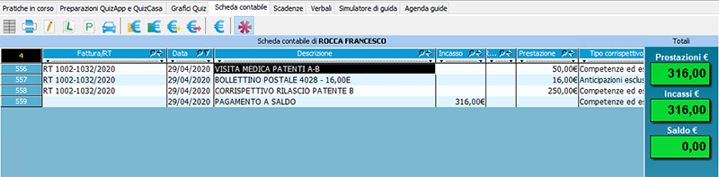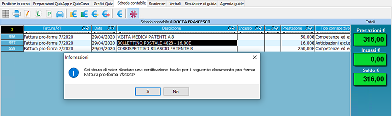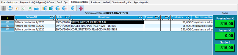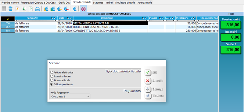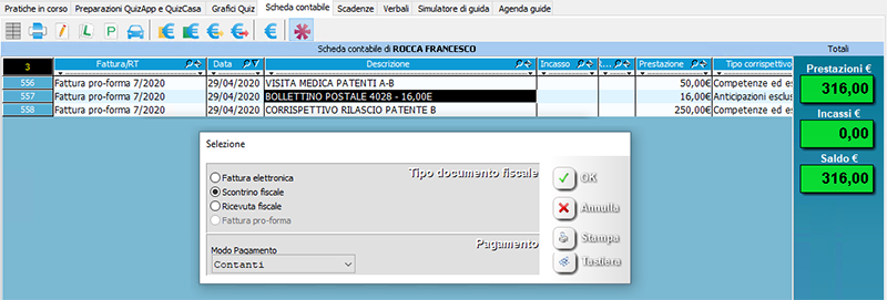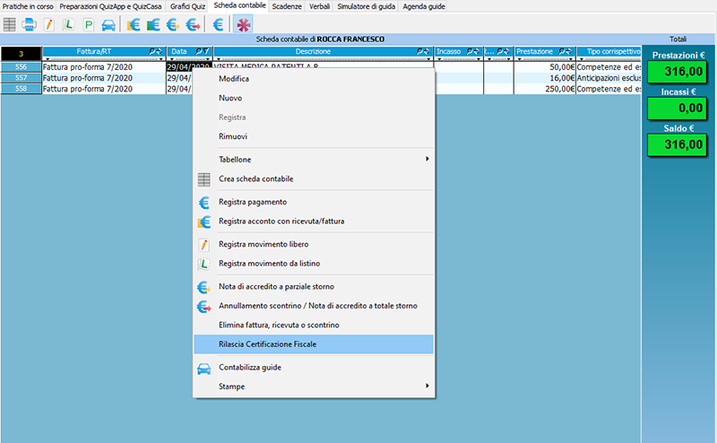 Nel momento in cui un candidato salderà le prestazioni sarà possibile registrare i movimenti rilasciando una certificazione fiscale.