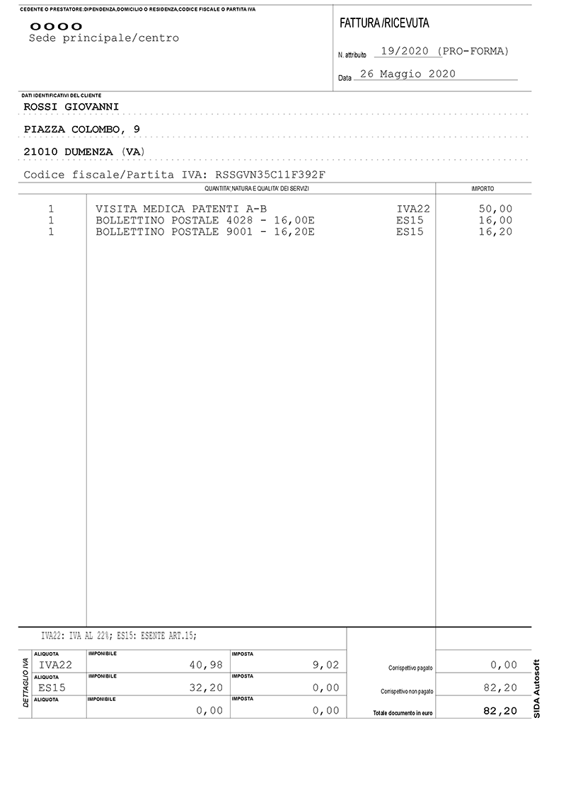 Verrà stampata una fattura pro-forma nello stesso modo in cui il cliente stampa la ricevuta fiscale. La differenza sta che nel fatto in cui nessun incasso verrà registrato.