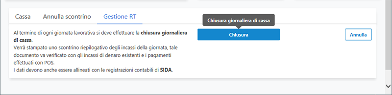 Procedura di annullamento degli scontrini e chiusura cassa
