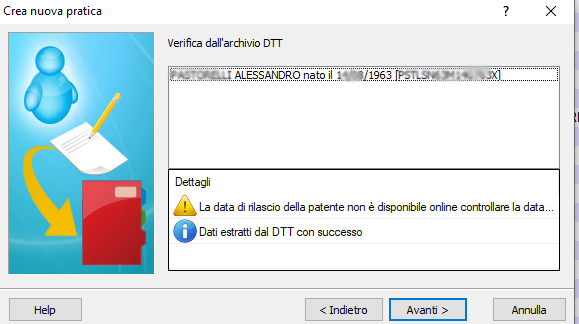 Migliorata la ricerca dei dati relativi alla patente durante la creazione di una nuova pratica da wizard.