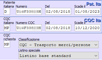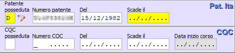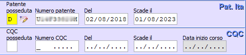 Situazione precedente: la data di rilascio della patente non era corretta in quanto relativa non al documento patente ma ricavata dalle abilitazioni, mentre la data scadenza non veniva ricavata e doveva essere inserita a mano, come da figura seguente: