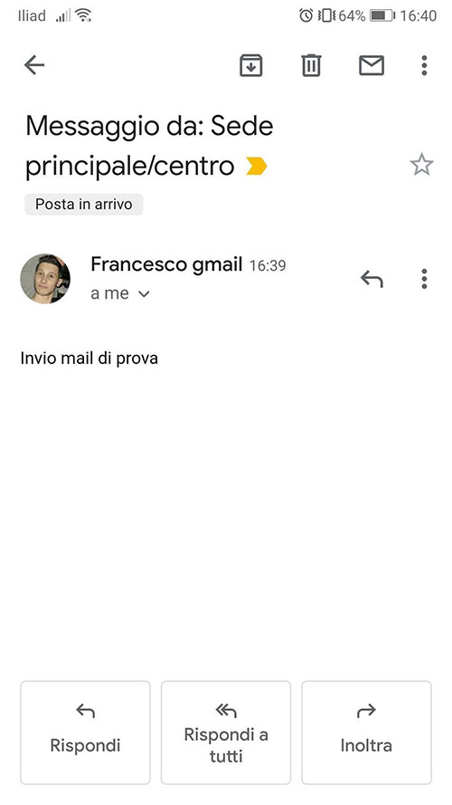 Una volta scelta una mail, scrivere il testo e premere Invia.