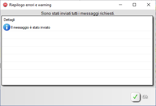 Dopo aver stabilito la connessione con il CED ed aver trasmesso il flusso di richiesta, viene visualizzata la finestra con l'esito della trasmissione.