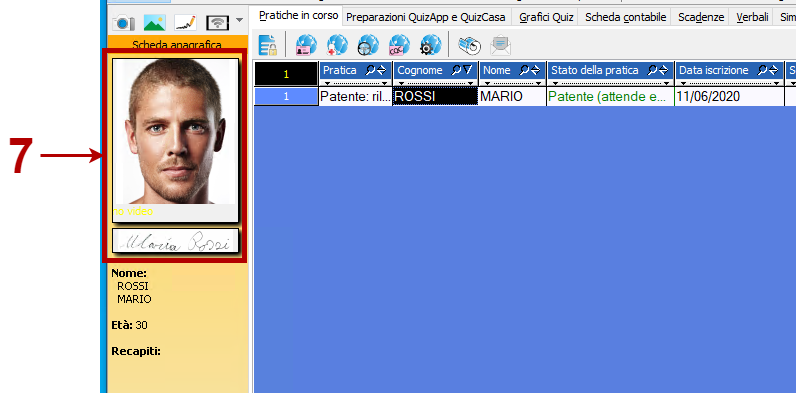 Se l'autoscuola legge il protocollo con lettore di codice a barre, verrà compilato il campo "prot. certificato medico".