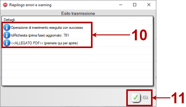 (6) Premere “OK” per registrare la pratica nella gestione.