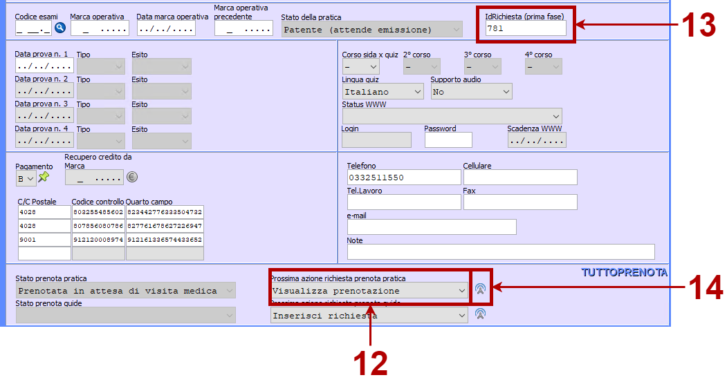 (12) Il menù a tendina “Prossima azione richiesta prenota pratica” varierà in “Visualizza prenotazione”