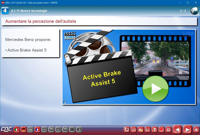 Abbiamo integrato l'ora dedicata alle nuove tecnologie ed ai sistemi di aiuto alla guida ADAS con i filmati relativi al truck Actross che Mercedes Benz ha concesso di utilizzare nei prodotti SIDA fino al 31 dicembre 2022.