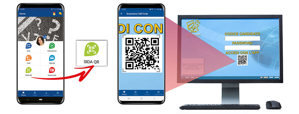 In questo modo, quando il candidato dovrà utilizzare SIDA Quiz gli basterà accedere all'app SIDA QuizApp e, utilizzando l'opzione "SIDA QR", scansionare il QR Code.