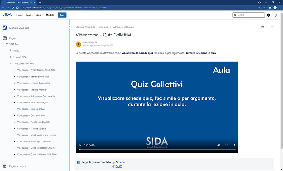 Così come già fatto da qualche mese per il modulo gestionale di SIDA, anche l'aula è stata arricchita di una guida di utilizzo online, sempre disponibile per il cliente e di facile accesso e lettura.