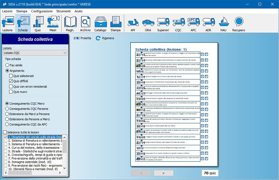 Dopo l'esposizione in aula, il docente può aiutare i candidati a fissare i concetti di ogni lezione utilizzando la funzione "Scheda" per i quiz collettivi.