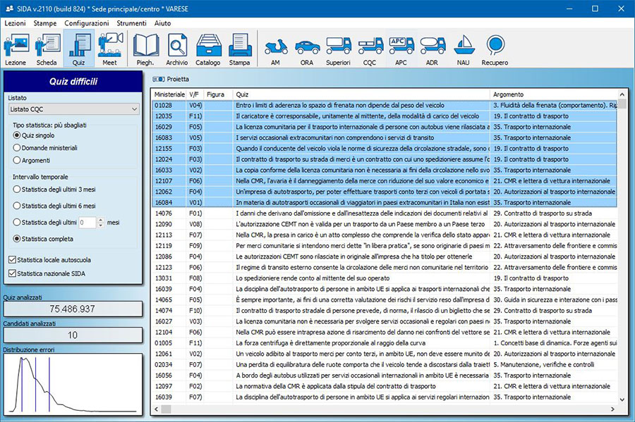 Attenzione: questo aggiornamento NON riguarda il nuovo listato CQC pubblicato in data 28.09.21 con Prot.n. 29923, il quale non è attualmente pronto perchè mancante della suddivisione per argomenti e della conseguente composizione della nuova scheda d'esame. Appena il Ministero renderà nota questa suddivisione, provvederemo ad aggiornare tutti i programmi SIDA.