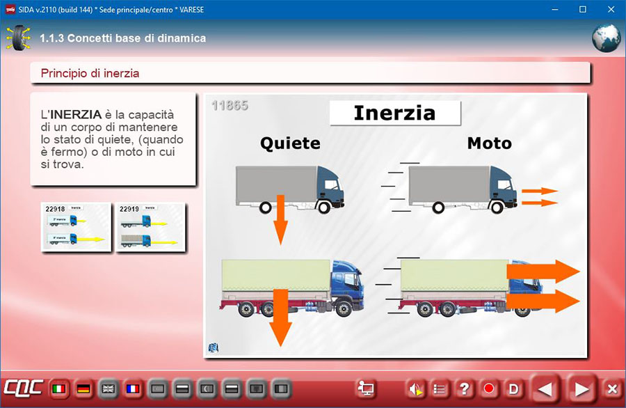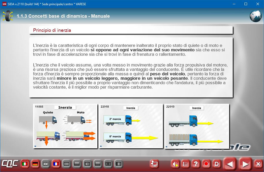 Abbiamo rinnovato alcune animazioni presenti nella prima ora della CQC periodica, parte generale (Dinamica del veicolo sulla strada). I concetti espressi sono quelli di massa, energia, forze fisiche agenti sui veicoli, peso, baricentro, velocità, energia potenziale e cinetica, inerzia, forze di resistenza e forze propulsive, forza di attrito...).