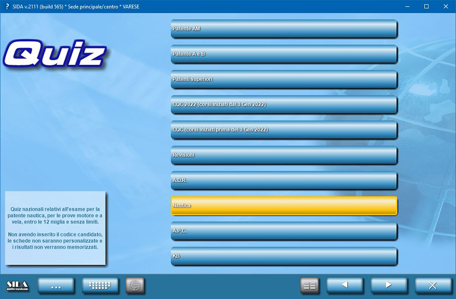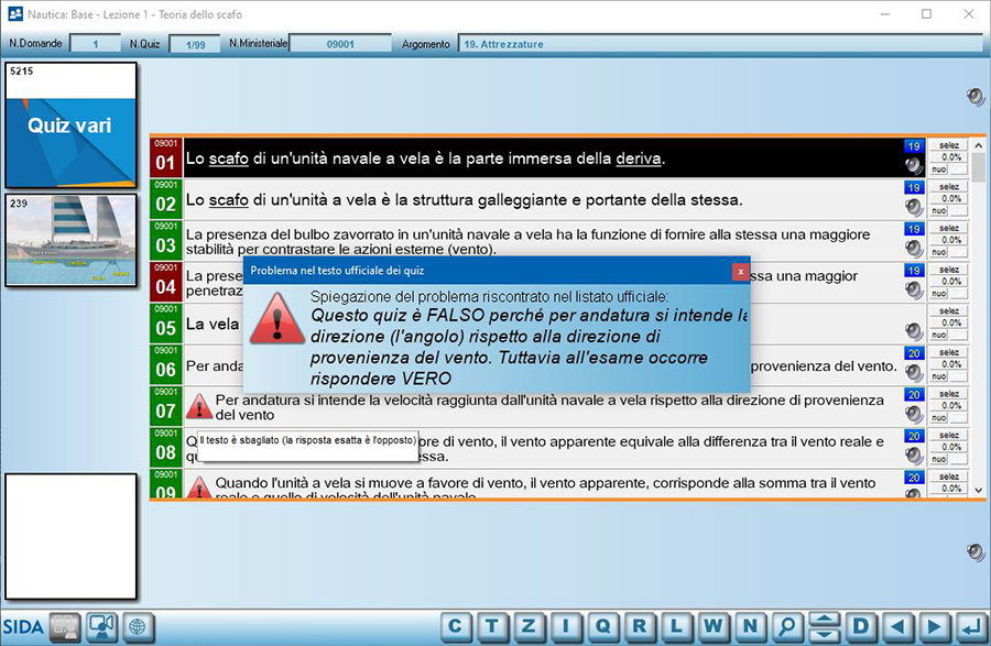 Il modulo quiz di SIDA è stato aggiornato con il listato nazionale per le patenti nautiche (Base e Vela).