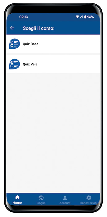che permette di svolgere, anche collettivamente, i quiz del listato base e/o vela, secondo le regole di composizione ufficiale delle schede.
