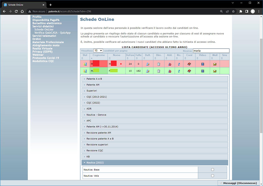 - SIDA Gestione: iscrizione dei candidati che si esercitano sul listato nautica 2022