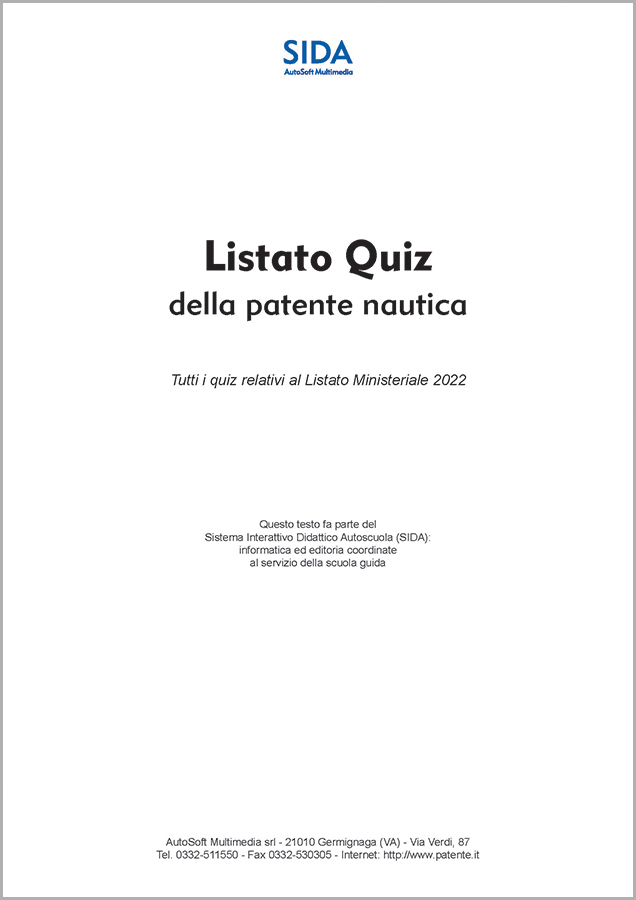 Nell'area personale del sito www.patente.it (materiale professionale → Listati Nautica) è disponibile l'ultima edizione (la quinta) del libro listato con tutti i quiz per le patenti nautiche aggiornati alla versione del 31/5/2022.